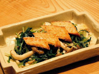 焼いた塩辛い山漬けを、おひたしや